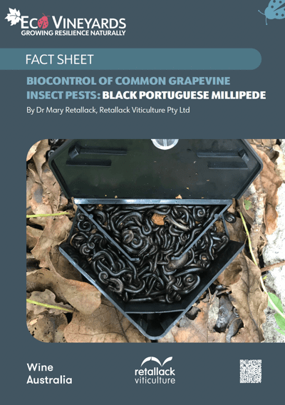By Dr Mary Retallack, Retallack Viticulture Pty LtdAbout this fact sheet Healthy and diverse populations of predatory arthropods (insects and spiders) and the parasitic nematode Rhabditis necromena can help prevent grapevine pests like the black Portuguese millipede from reaching economically damaging thresholds.DOWNLOAD FACT SHEET