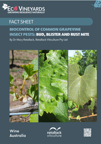By Dr Mary Retallack, Retallack Viticulture Pty LtdAbout this fact sheet Healthy and diverse populations of predatory arthropods (insects, spiders, and mites) can help prevent grapevine pests including bud, blister, and rust mite from reaching economically damaging thresholds.DOWNLOAD FACT SHEET